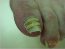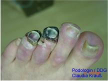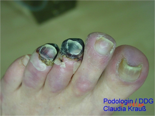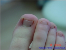 Hier ist die Gefahr, daß die Nägel ohne Therapiebetreuung einwachsen.