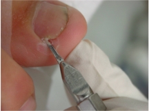 Dieser Nagel muss umgehend korrigiert und therapeutisch behandelt werden.